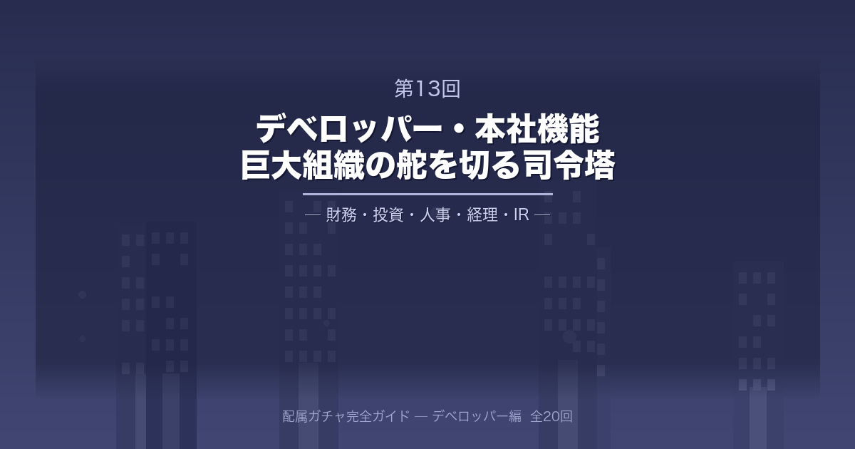 今回から始まる「デベロッパー編」の終盤戦では、各事業部門を裏側から支え、会社全体の方向性を決定づける中枢組織のリアルを徹底解説します。