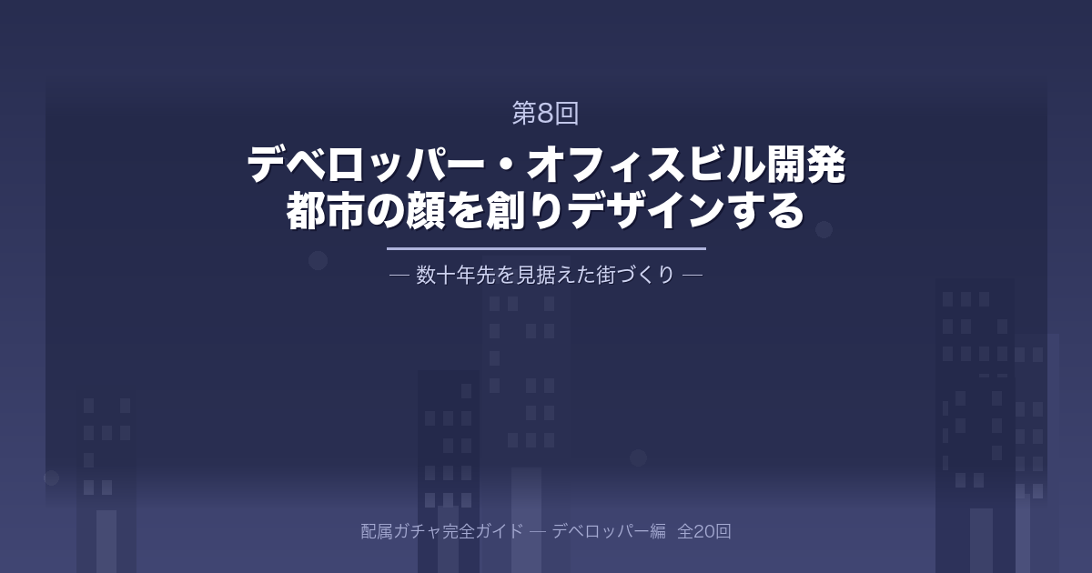 第8回は、大手デベロッパーのメインエンジンである「オフィスビル開発・運用部門」です。丸の内や日本橋といった日本のビジネスの中心地を舞台に、数千億円規模のプロジェクトを動かし、都市の価値を最大化させる花形部署のリアルに迫ります。