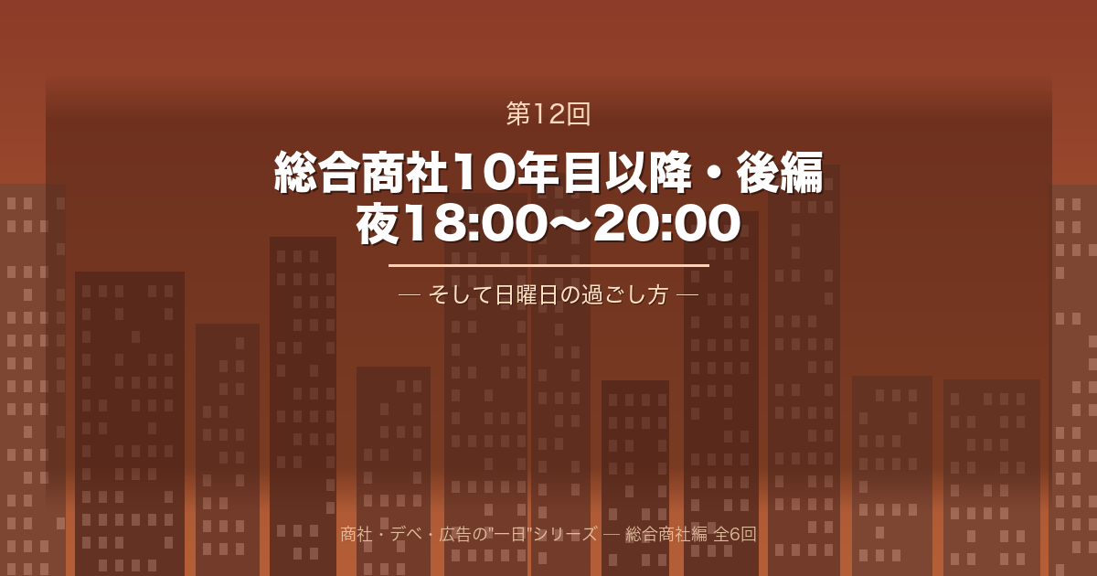 ▶ 第12回:総合商社10年目以降・後編 ─ 夜18:00〜20:00+日曜日(この記事)