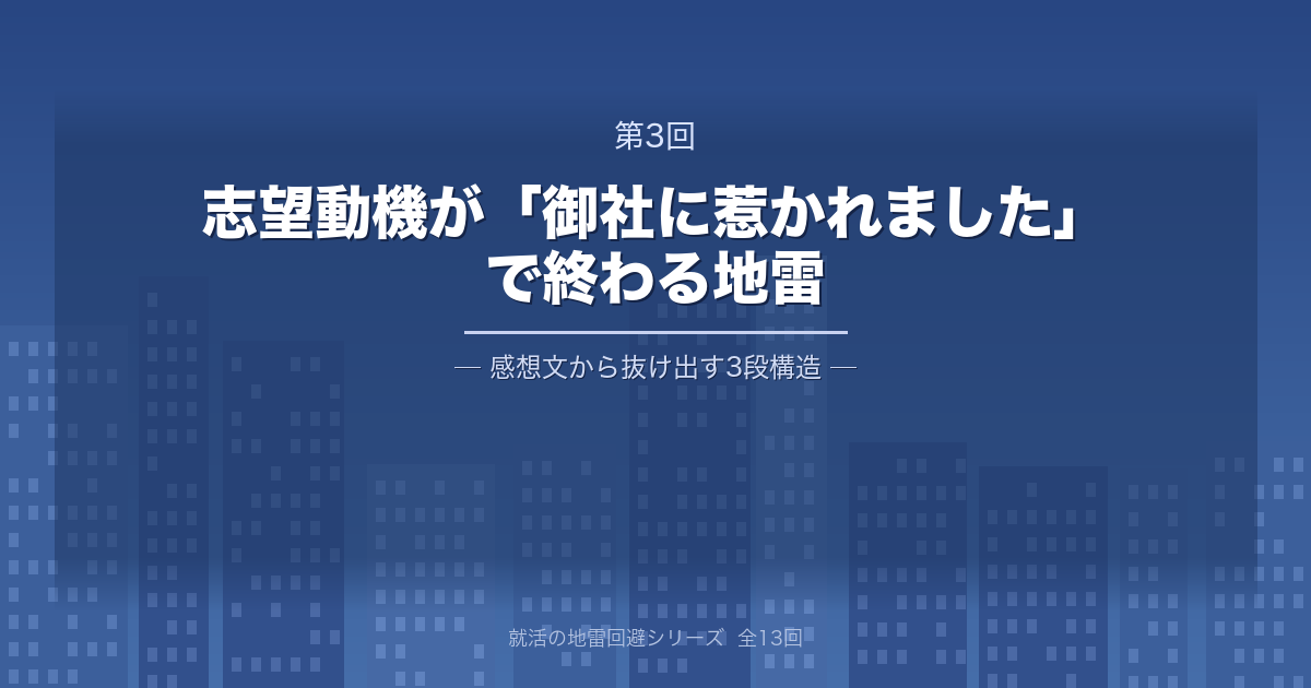 ▶ 第3回:志望動機が「御社に惹かれました」で終わる地雷(この記事)