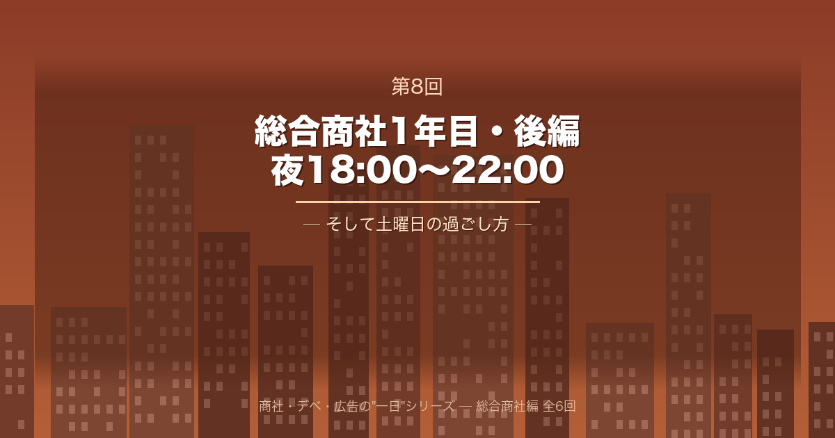 ▶ 第8回:総合商社1年目・後編 ─ 夜18:00〜22:00+土曜日(この記事)