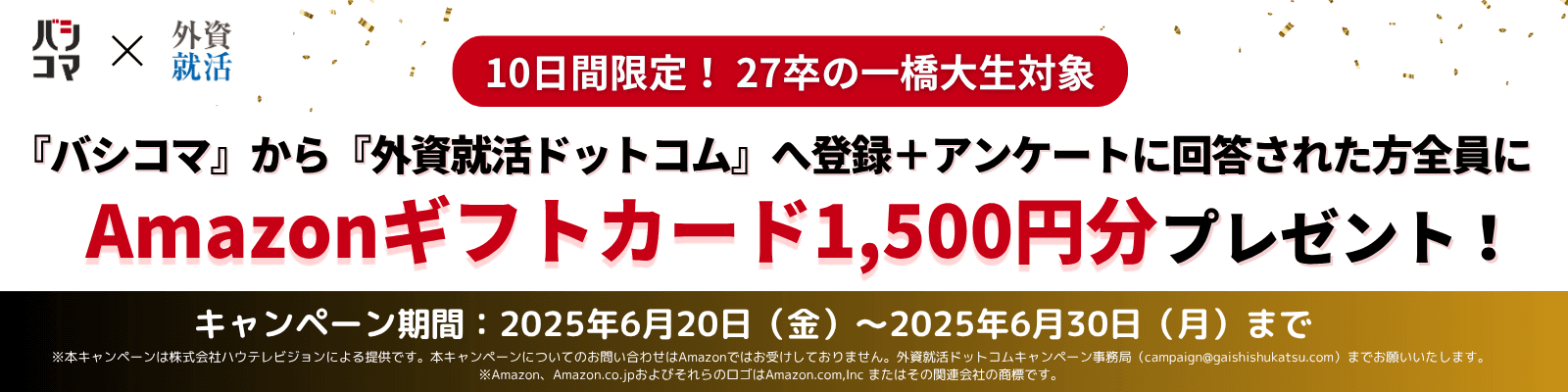 【27卒一橋大生対象】バシコマ × 外資就活ドットコム 期間限定キャンペーン