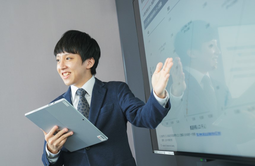これが当社の企業理念です。この根底にあるのは「社会を明るく、豊かにするために役に⽴ちたい」という想い。そのために求められるのが⾼い専門性と豊かな知識です。多様な⼈材が集う当社だからこそ「仕事を通じてお互いを切磋琢磨しあい、能⼒を⾼められる」環境の中で、⾃らの専門性を存分に発揮して社会に貢献できる知的集団でありたいと思っています。社員が新しい事業分野の創出やドメインの開発に挑戦できるよう、会社としても積極的にバックアップしています。