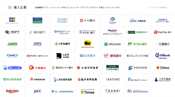メガバンク、大手カード会社、政府系金融機関等、日本の金融産業の主要プレイヤーの皆さまとの取引実績があります。
